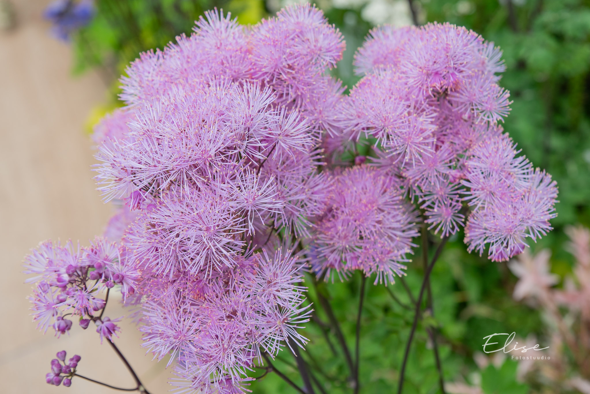 Õitseb pisikeste roosakaslillade kohevate õietupsudega, mis ilmuvad hiliskevadel tumelilladele vartele. Närbunud õite eemaldamine pikendab õitsemisaega.