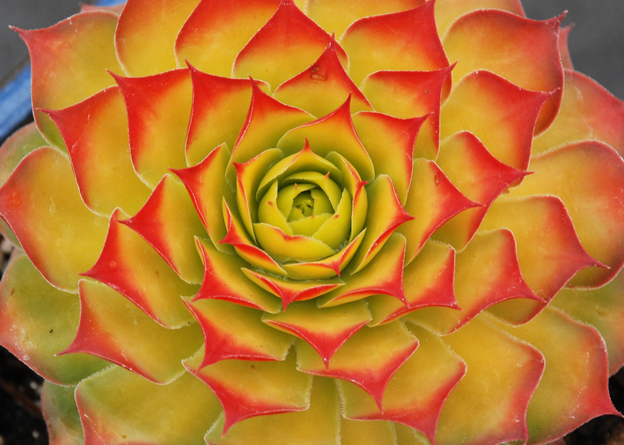 Uskumatu värvitooniga ning aastaajati värvi muutev uudissort. Noorelt neoonroheline, seejärel kollakaks muutuv pilkupüüdev lehestik, mille leheotsad on erepunased. Talvel muutub tema tonaalsus oranžikamaks. Moodustab tiheda rosettide kogumiku.