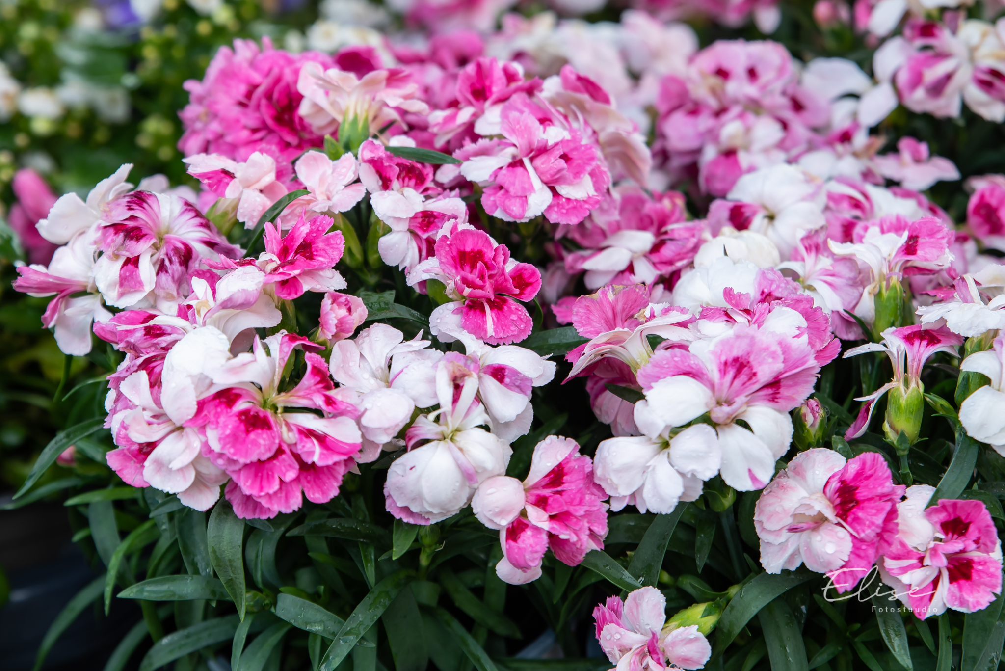 • Õied: kahevärvilised erkroosad ja valged, tugeva klassikalise nelgilõhnaga. Õite läbimõõt 4-4,5 cm