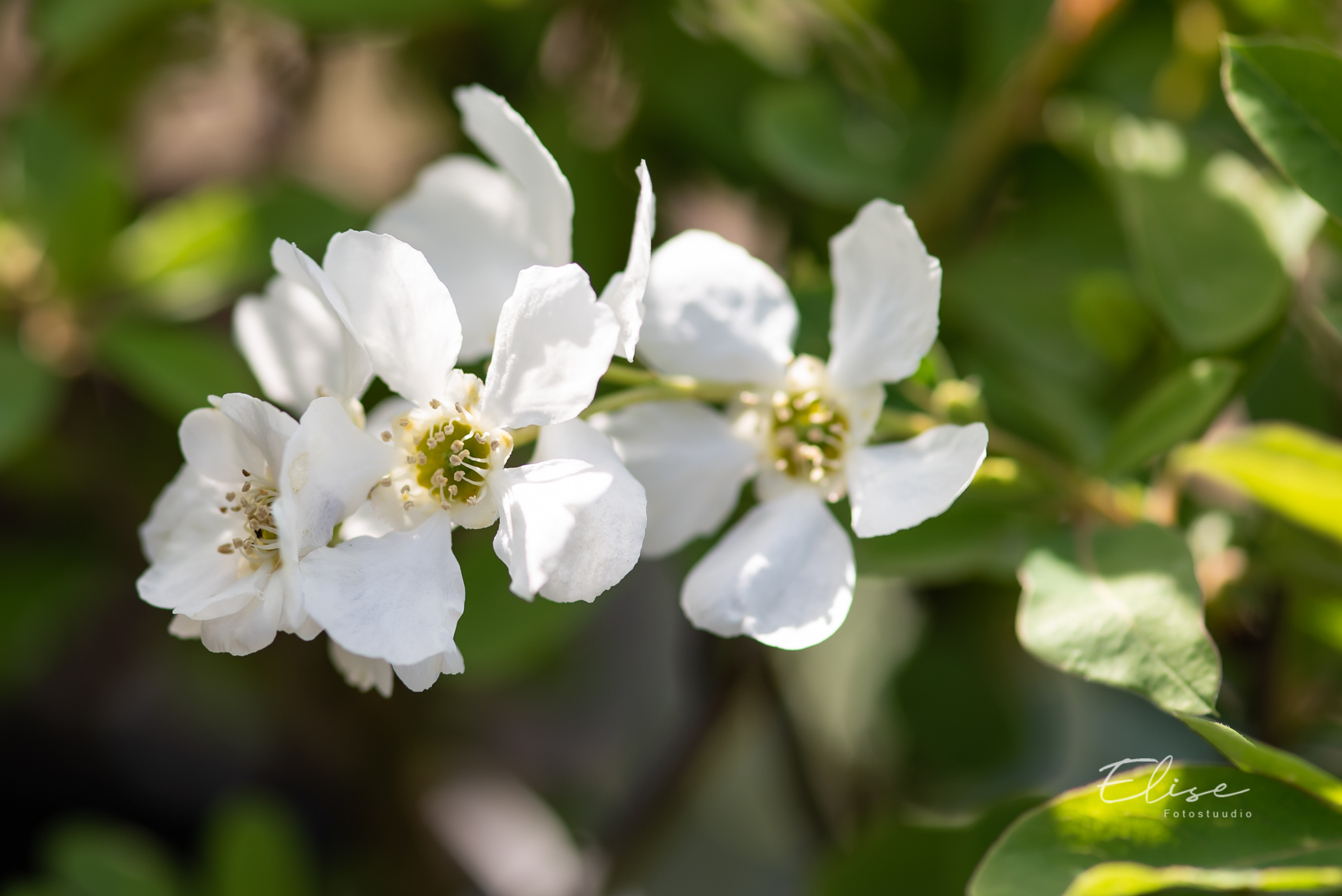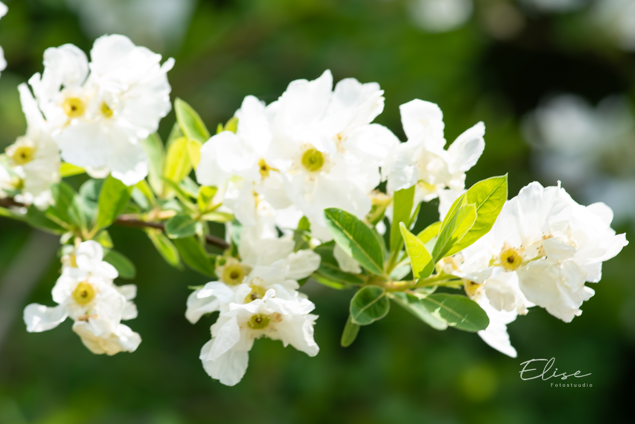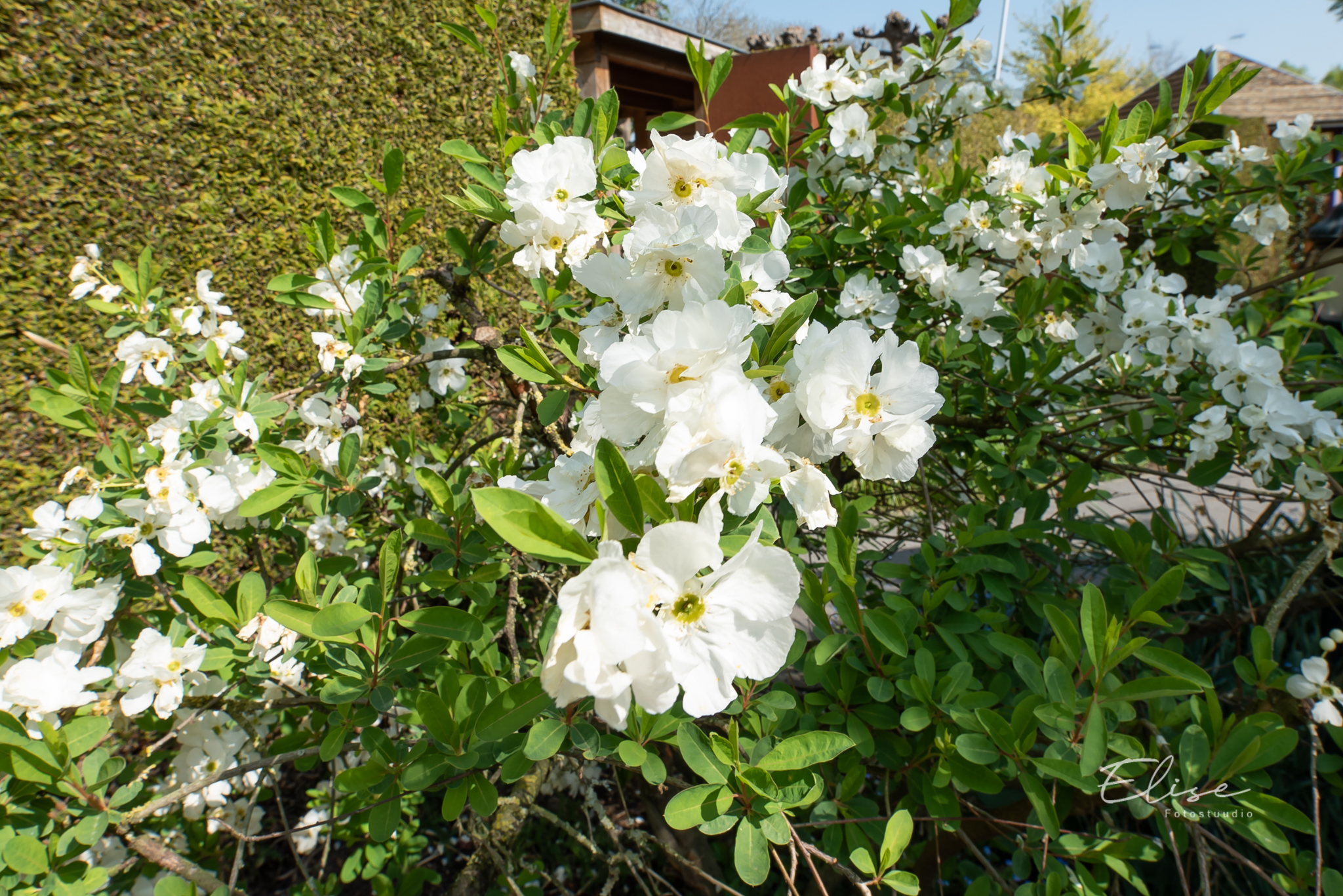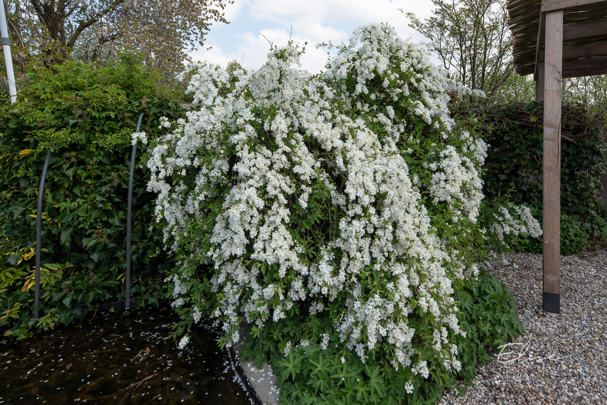 Mai lõpus kuni juuni alguses puhkevad ümaratest, pärlite sarnastest õienuppudest suured, 2–3 cm läbimõõduga valged õied. Õitseb erakordselt rikkalikult, kattudes üleni valgete õitega.