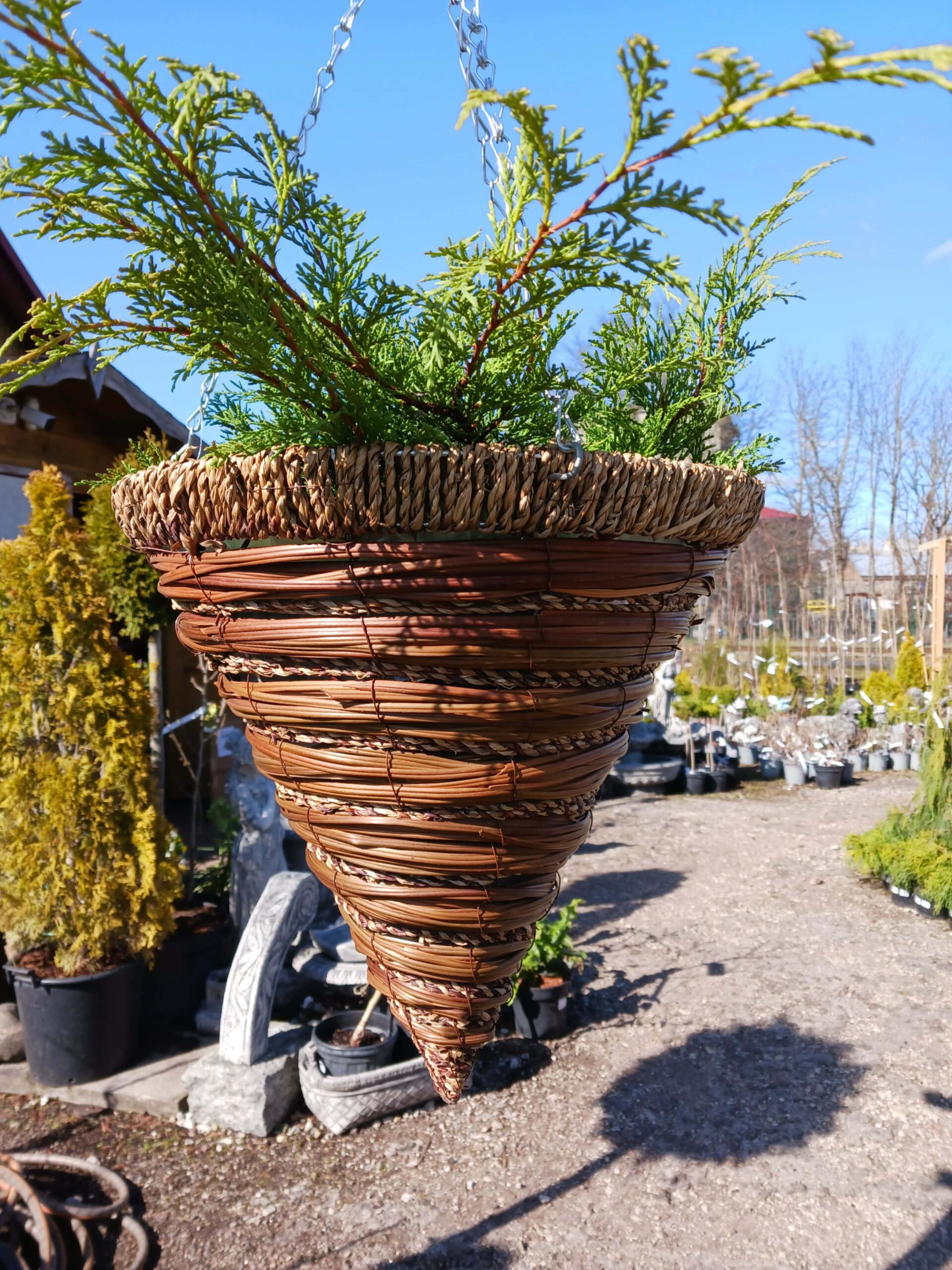 Tugevad nöörid tagavad kindla riputuse ning lisavad loomuliku ja dekoratiivse ilme. Koonusjas kuju suunab taime kasvu kaunilt allapoole, tuues taimede vormi eriti hästi esile.